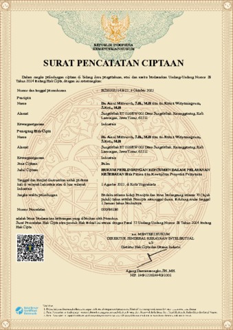 Ainul, Masruroh and Ratna, Widyaningrum (2025) HUKUM PERLINDUNGAN KONSUMEN DALAM PELA Y ANAN KESEHA T AN Hak Pasien dan Kewajiban Penyedia Pelayanan. universitas wahid hasyim.